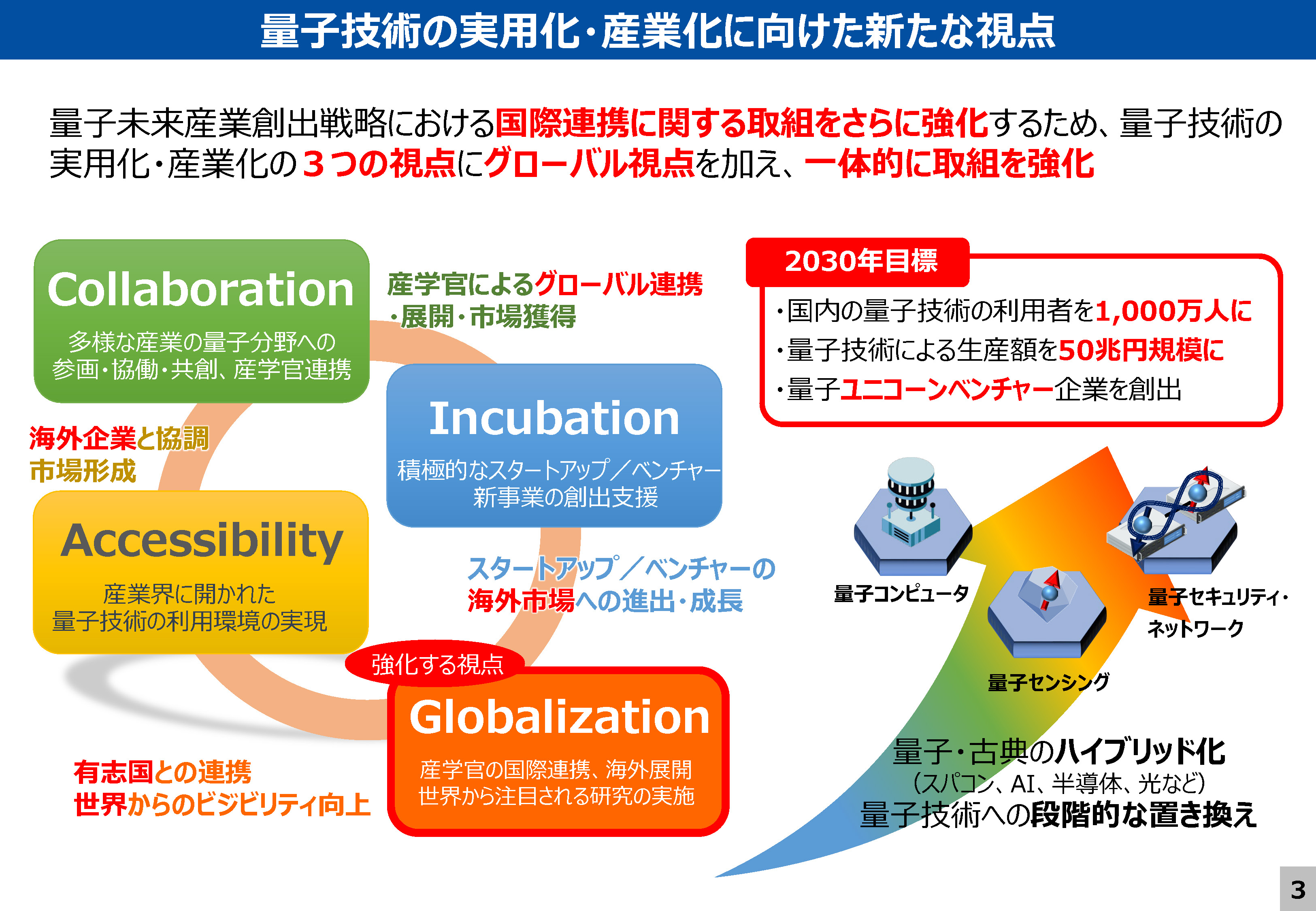 現在、米国や中国を中心に量子技術の覇権争いが激化しており、日本も2020年に「量子技術イノベーション戦略」を策定し、国を挙げて研究開発を推進しています。