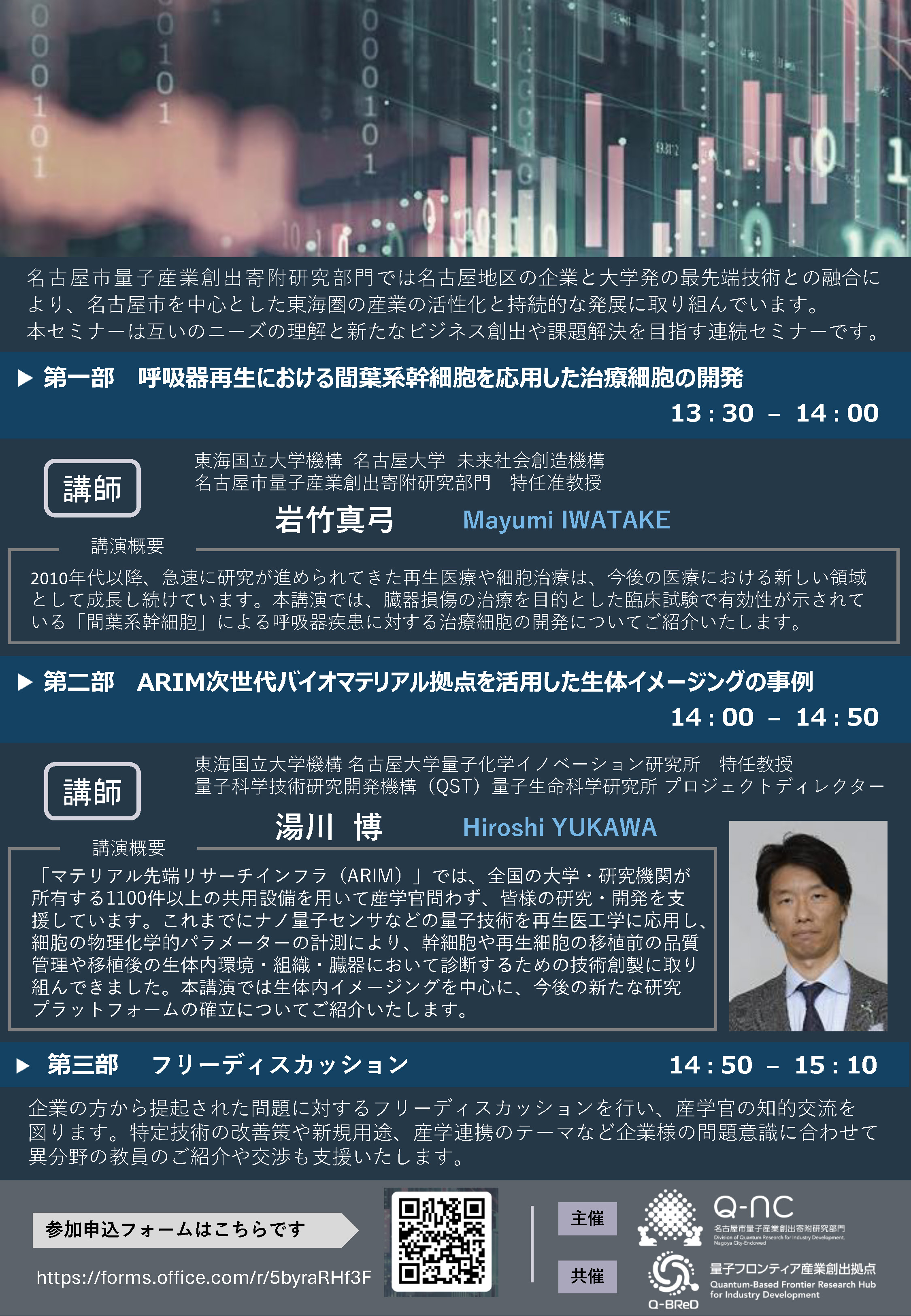 2025.01.09名古屋市量子産業創出寄附研究部門では名古屋地区の企業と大学発の最先端技術との融合により、名古屋市を中心とした東海圏の産業の活性化と持続的な発展に取り組んでいます。